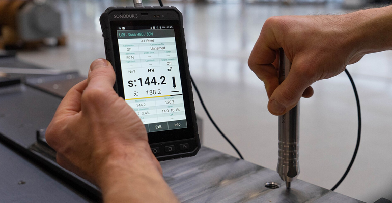 Conventional hardness testers, like Rockwell, Brinell or Vickers machines, require the test piece be brought to the testing device; but this is not always possible. Portable testing devices have been developed that permit in-situ hardness measurements thus offering quick and economical supplements to conventional, stationary testing machines. We offer on-site hardness testing services using Equotip range of portable hardness testers. Applications: • Coatings • Hardened Surfaces • Heat Affected Zones • Castings • Forgings • Sheet metal • Coils